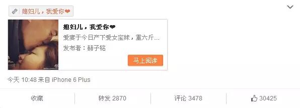 爱妻于今日产下爱女宝妹,重六斤五两,母女平安,我此刻非常激动,在她怀孕之后,我每天都很紧张,因为距离上次剖腹产时间才一年,所以有一定的风险,我曾经想过放弃,但是她说:这孩子是一条生命,她来了我们就要好好的迎接她,哪怕是只有一线希望我也不会放弃我的孩子!所以我们就决定生下这孩子,为了这个孩子,她放弃了很多机会,虽然她不说,但是我知道她有多么的热爱自己的音乐事业,就是这样在自己还能动的情况下完成了自己的唱片,那些天她挺着肚子每天录唱片拍mv,虽然她乐在其中,但是真的很心疼她,直到医生跟她说她的身体情况已经不能够随意走动,她才没有再工作,在生产前两个月她几乎是完全处于卧床状态,每天腰疼的她上厕所都困难。在产房里我一直握着她的手不停的跟她说话,生怕她睡着,当她被推出产房,我终于松了口气,媳妇儿辛苦了!我爱你!