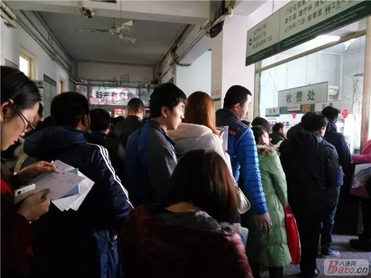 再来看看潞河医院的产科,也只能用人多和爆满来形容了。产科在二层,刚上来楼梯就可以看到在妇产科外的收费处排起了长队,整个妇产科的走廊里更是坐满了人,门口还站了好几个在外等候的准爸爸们。