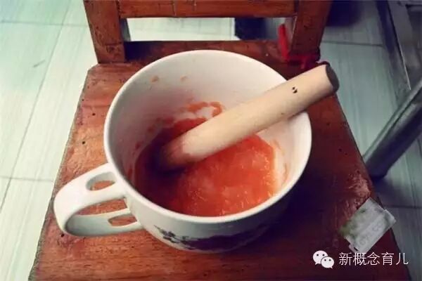 捣烂。昨天做的胡萝卜加南瓜加土豆,发现宝宝有些不消化,上火,于是换成了冬瓜