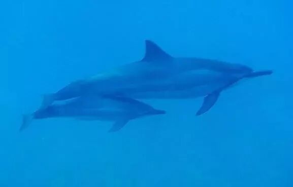 生小海豚的时候,雌海豚会聚集在一起保护快要生的雌海豚。雌海豚会将身体弓起,奋力向前游,同时大幅度摇摆尾巴,直到小海豚的尾巴露出母体。
