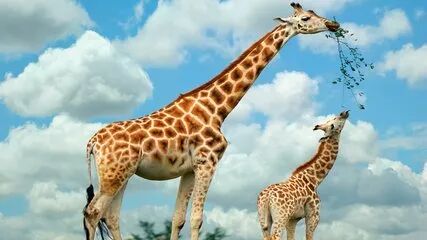 母长颈鹿站着生宝宝,小鹿一生出来就有180公分高,出生几小时后就可以奔跑。
