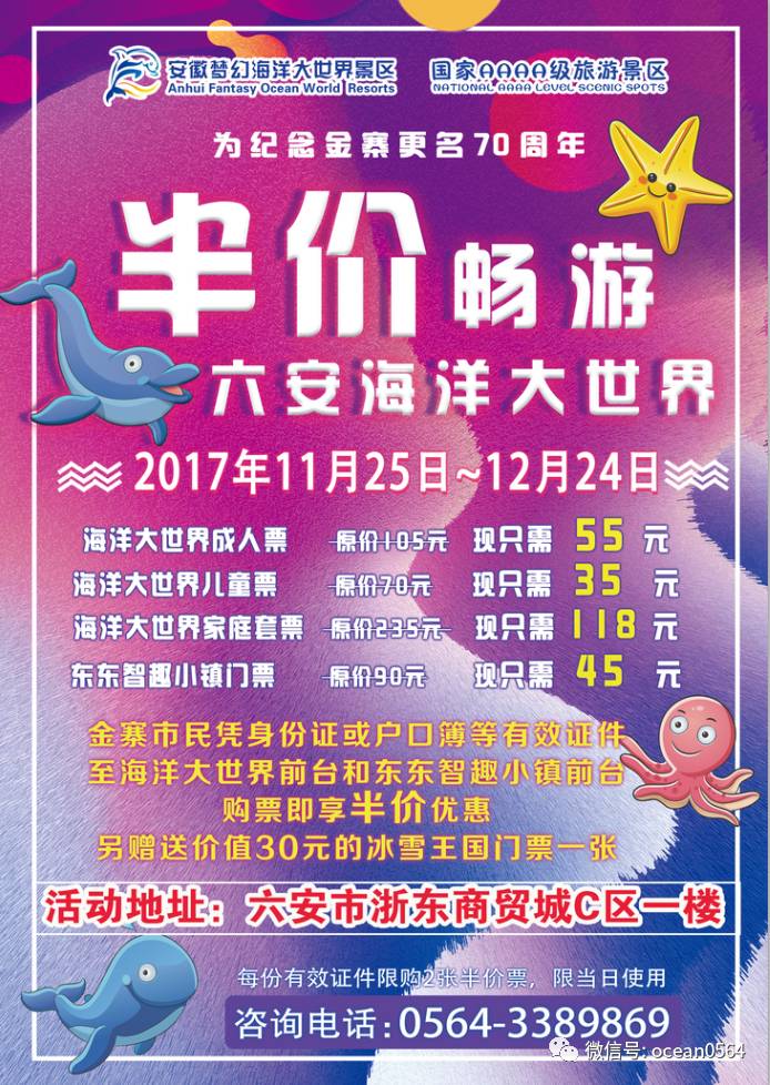 ?地址:安徽省六安市解放中路浙东商贸城C区一楼安徽梦幻海洋大世界景区内