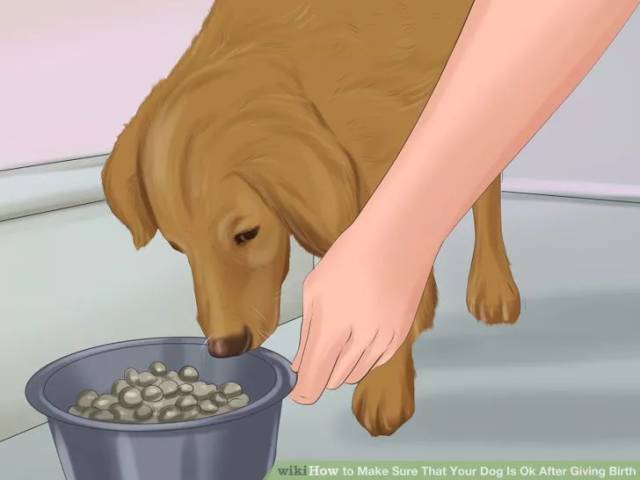 减少母犬的每次进食量,需少量多餐,减少对子宫的压力,每天可调整为饲喂4次。