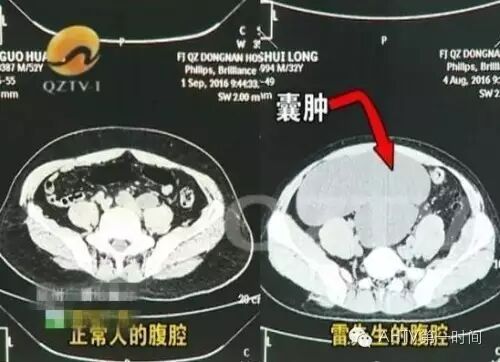 泌尿外科主任医师曾明泉告诉记者,雷先生的右侧输尿管没有接入膀胱,闭锁了,构成大量尿淤积,输尿管淤积在里面,如果感染破裂或出血,就会致命的。