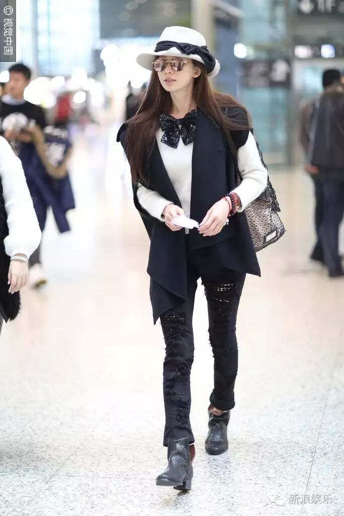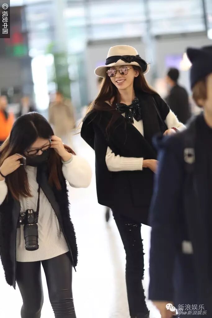 这一身“黑白配”的私服,帽子、胸前都是蝴蝶结。