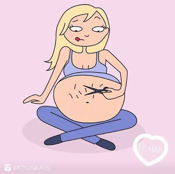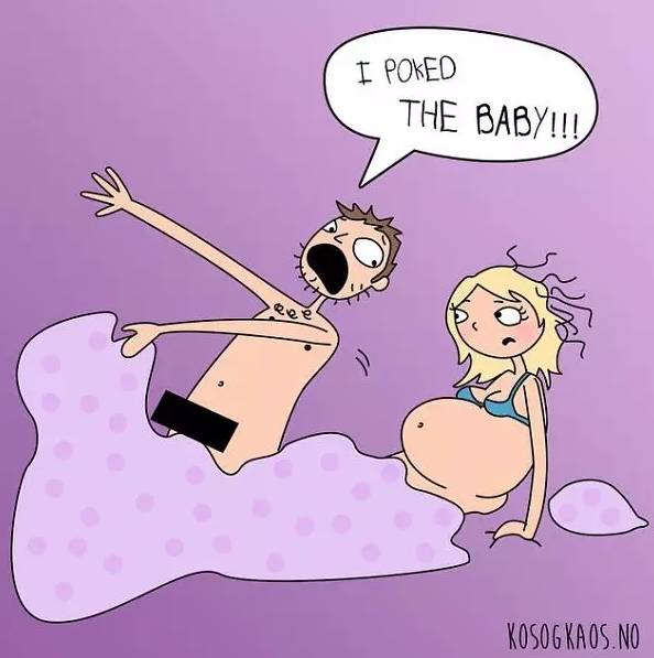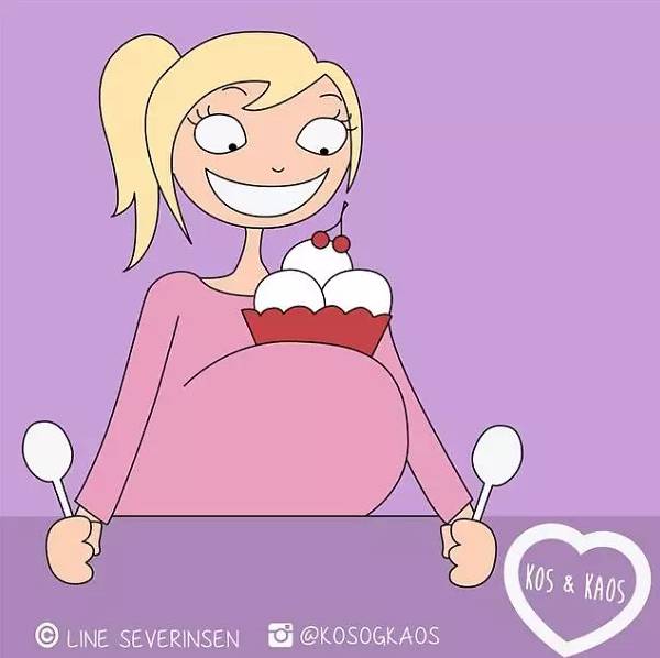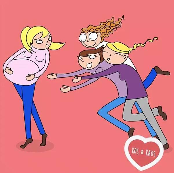 挪威艺术家Line Severinsen亲身体验怀孕生娃的过程后,创作Kos og Kaos漫画,通过滑稽和多彩的图像,向大家展现了当妈妈的混乱,怀孕有时候并非那么完美。