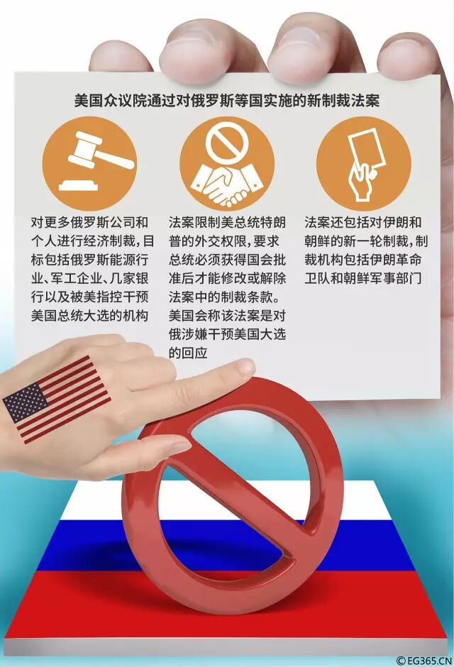 在美国众议院通过对俄罗斯、伊朗和朝鲜的新一轮制裁法案后,当地时间27日,美国参议院也通过了该法案。法案将在总统签字后正式生效。此法案的一个突出特点是:限制了总统特朗普的外交权力,要求总统必须获得国会批准后才能修改或解除法案中的任何一项制裁条款。