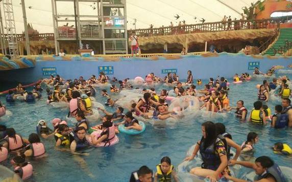 天气炎热 乌鲁木齐近万人到水世界游泳馆避暑