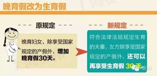 ★符合法律法规规定生育的夫妻,女方除享受国家规定的产假外,还可以再享受生育假30天。生育假享受产假同等待遇。即晚育妇女在享受国家规定的98天产假的基础上,增加晚育假30天。