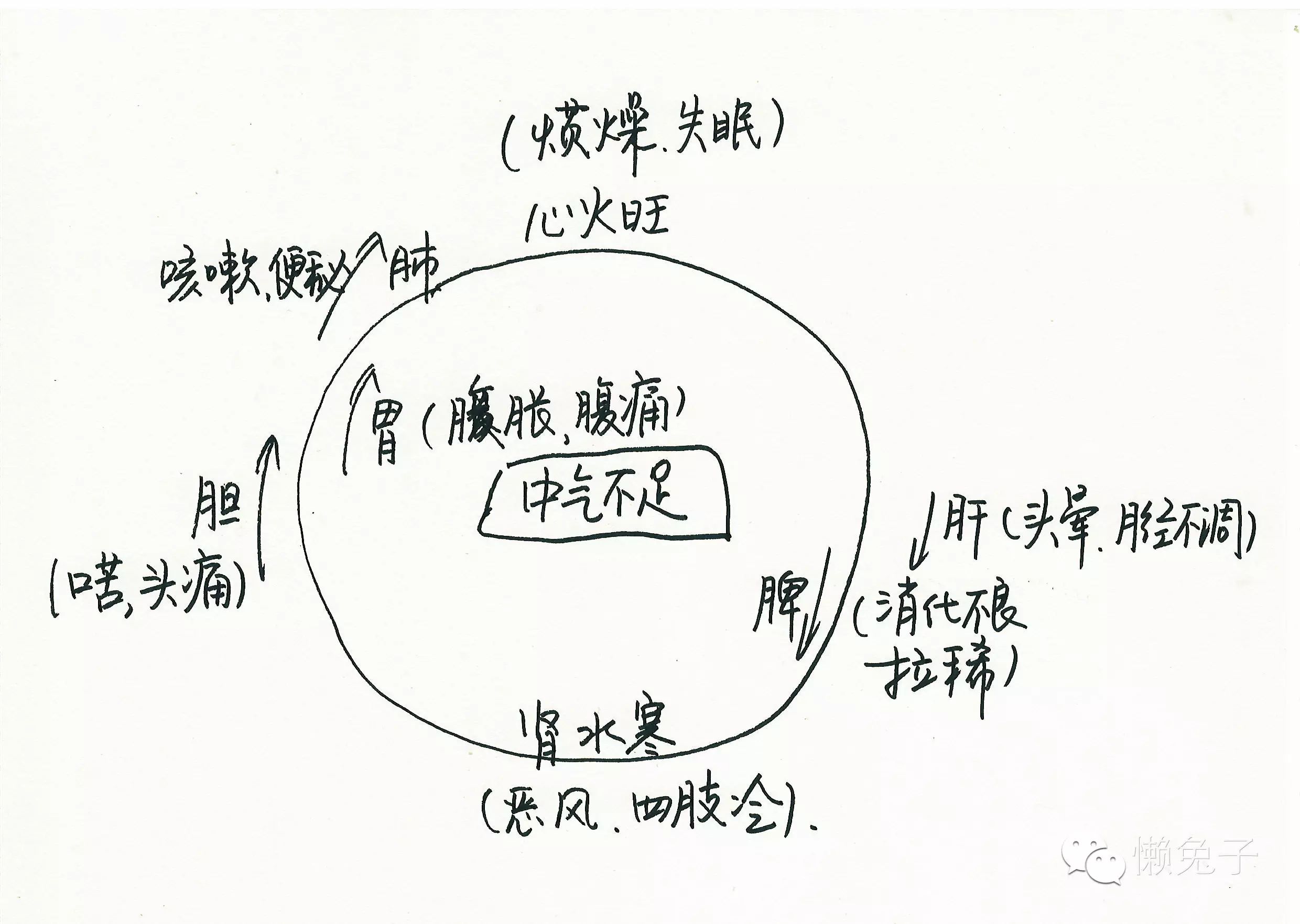 那这是怎么形成的呢?说到底,还是脾气不足,气虚导致的。因为脾气虚了才会脾湿,脾湿身体的圆圈转不动了,或者逆转了,就会导致很多病症(具体圆圈参看昨天的文章)。