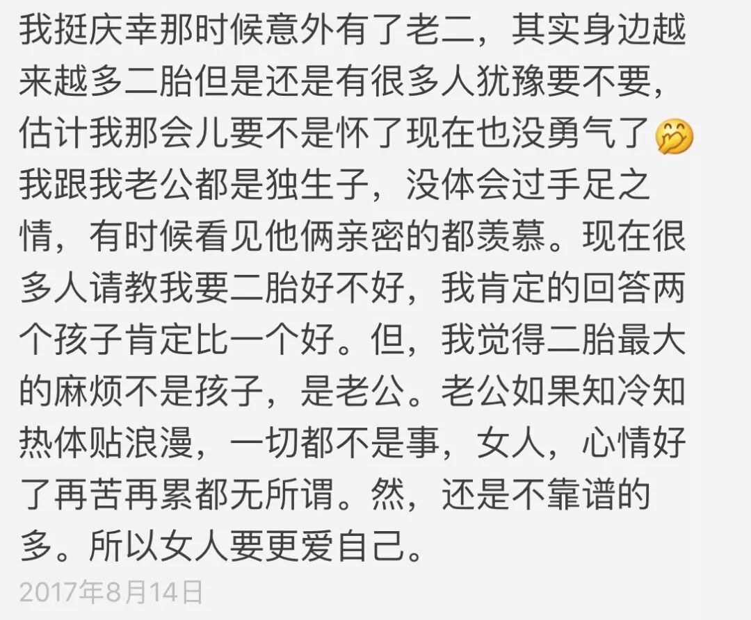 就像留言中这位妈妈说的一样:二胎最大的麻烦不是孩子,是老公。