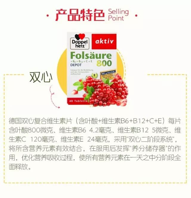【德国双心 多维叶酸800复合缓释片】