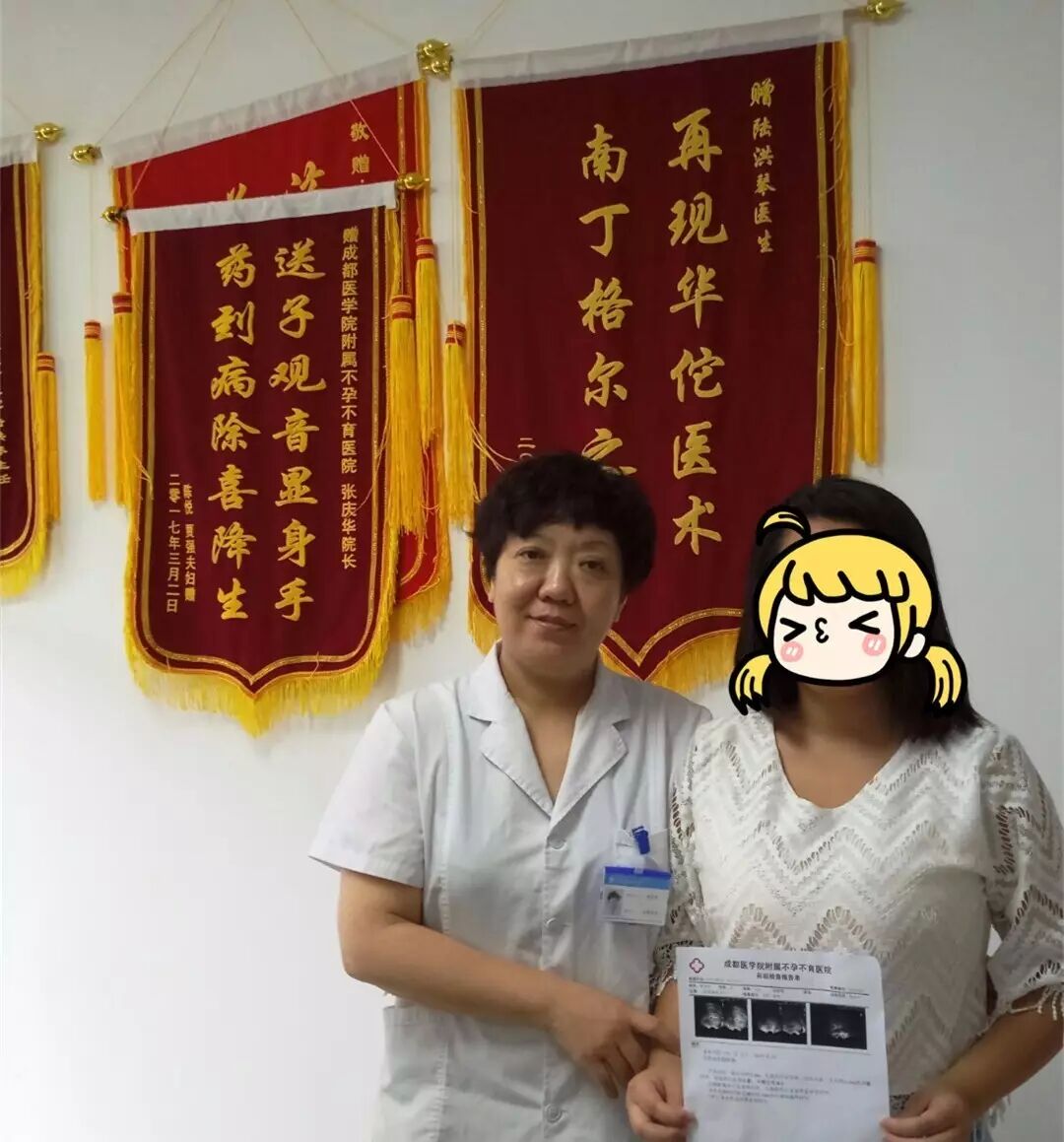 2017年7月底,来自成都大丰的小陈前来给张院长报喜留念时,将幸福快乐的微笑留在众多报喜家庭的行列中。