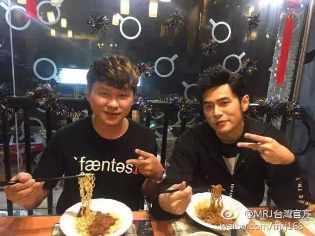 杰伦听完后十分感动,请这位忠实粉丝吃面,还和他一起拍照留念。