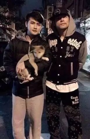 台北街头,有位粉丝在遛狗时偶然碰到周杰伦,激动地想和他合影,刚好手机没电,他一脸着急地对杰伦说“我回去拿ipad,等我”。