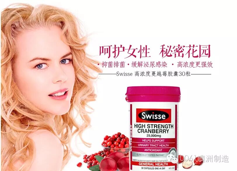Swisse蔓越莓是澳洲中最受欢迎的女性保健产品,被誉为天然广谱抗生素;主要作用是抑制多种致病细菌生长和繁殖,阻止这些致病菌与体内细胞发生黏附,预防和控制妇女泌尿道感染以及抑制幽门螺旋杆菌感染;帮助保持膀胱壁的完整性并维持尿道正常的pH值,促进女性自洁功能,时刻消除妇科病隐患。