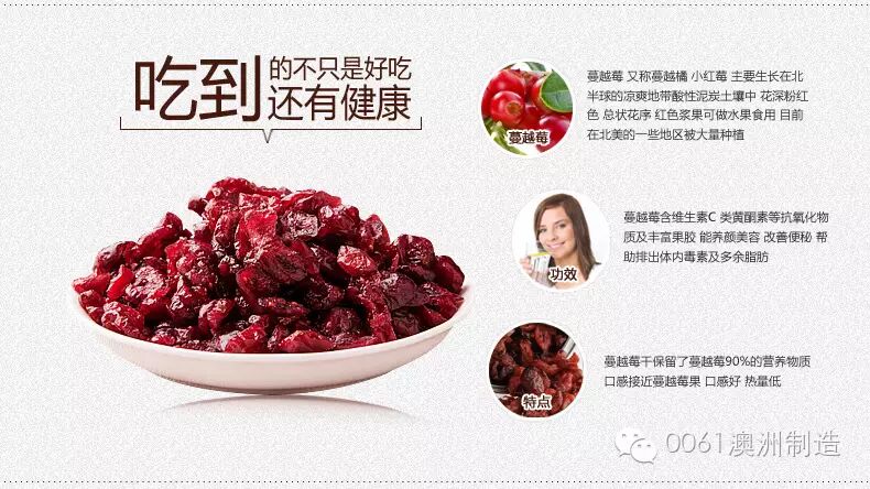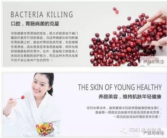 蔓越莓所含天然VC,是普通水果的8倍;天然SOD酶,是普通水果的400倍;由于含高量的维他命、矿物质及抗氧化物,具有卓越的补血养颜、美白淡斑的效果。因此能有效地对抗自由基,促进胶原合成,使肌肤变得年轻,健康美白。