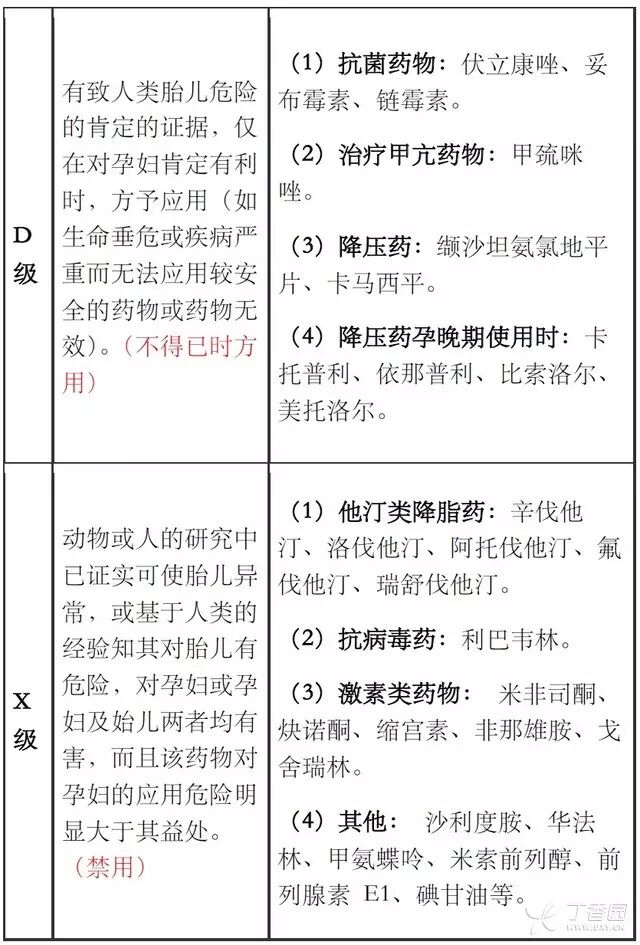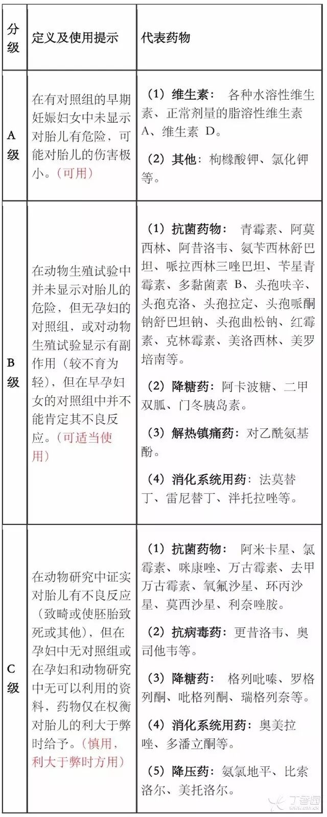 妊娠期用药安全等级:美国 FDA 根据药物对胎儿的危害性将其分为以下 5 级:
