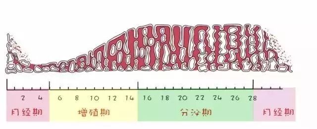 咱们以一个28天的月经周期为例,从月经的第一天为开始,来看一看子宫内膜的厚度是如何变化的吧: