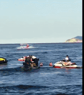 而在摩托艇环节……作为嘉宾的孙杨面对同时落水的谢娜和张继科……