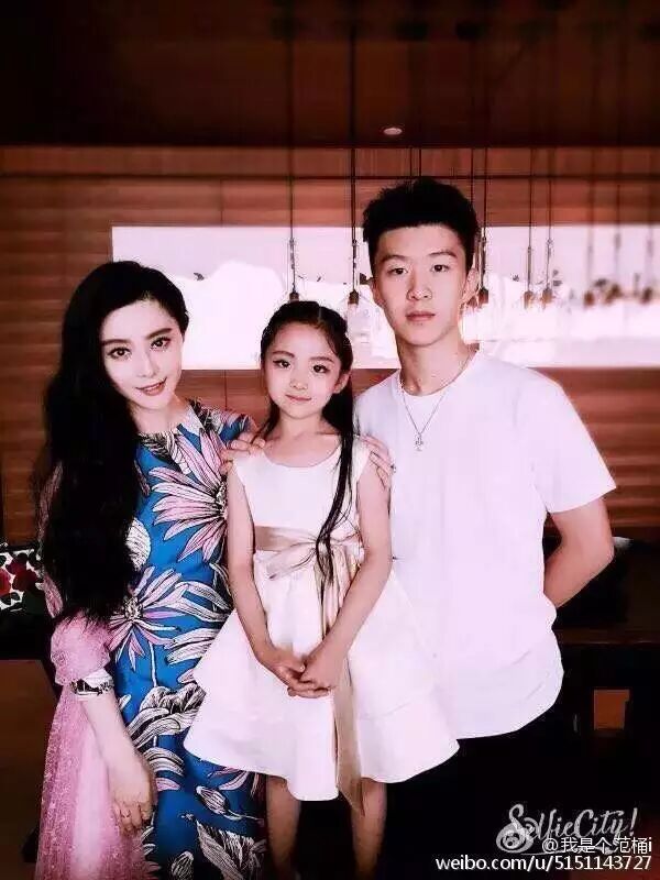今天,有网友曝出范冰冰与弟弟范丞丞同框照,照片中,范冰冰身穿蓝色印花长裙,长发飘飘,揽着中间一位小美女的肩,弟弟则站在一旁,身穿白色T恤黑色长裤,虽然表情略有些僵硬,但比范冰冰高出半个头,眉眼帅气,已初步显露男神气质。