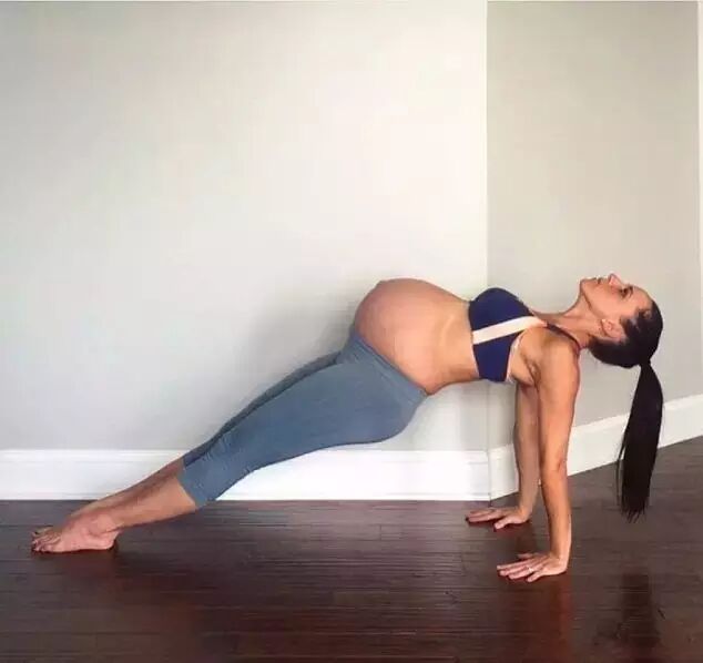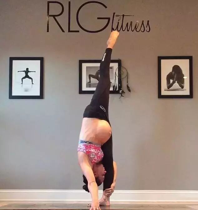 注:兰迪-格林首先是一位练习瑜伽多年的瑜伽老师,经验丰富,体能也不是一般人可比,所以在怀孕的时候练习倒立,初学者,最好还是不要模仿。