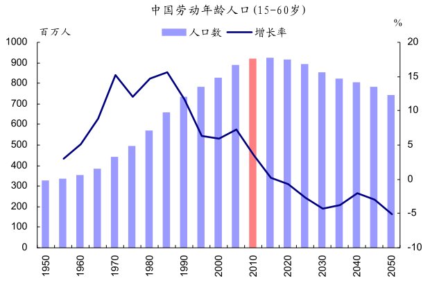 第一、从劳动力总量来看,中国劳动人口增速持续下降,劳动人口存量在 2015 年左右达到高点,随后变出现下降,劳动力的供给将开始下降。