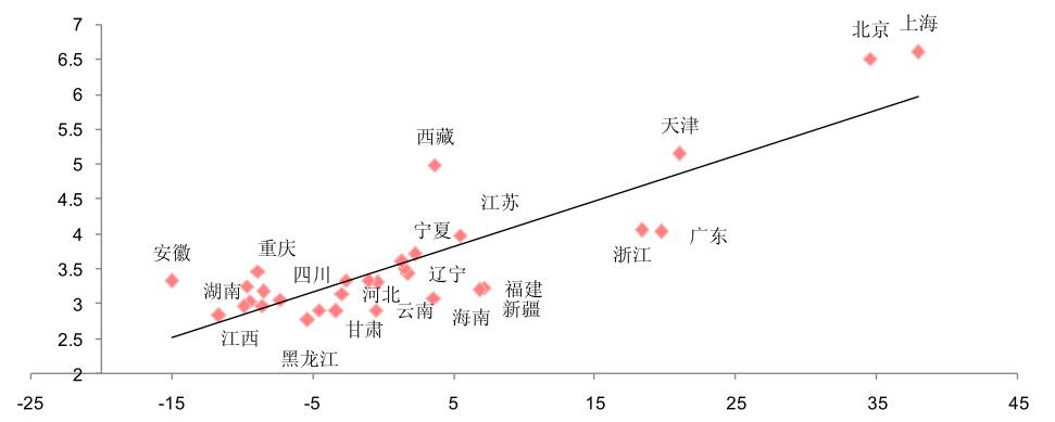 各区域迁入人口规模和平均工资水平存在明显线性关系