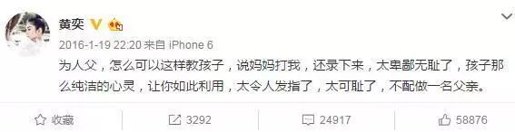 2016年初,关于黄奕虐待女儿的传闻,黄奕明确回应:孩子那么纯洁的心灵,让你如此利用,太令人发指了,太可耻了,不配做一名父亲。