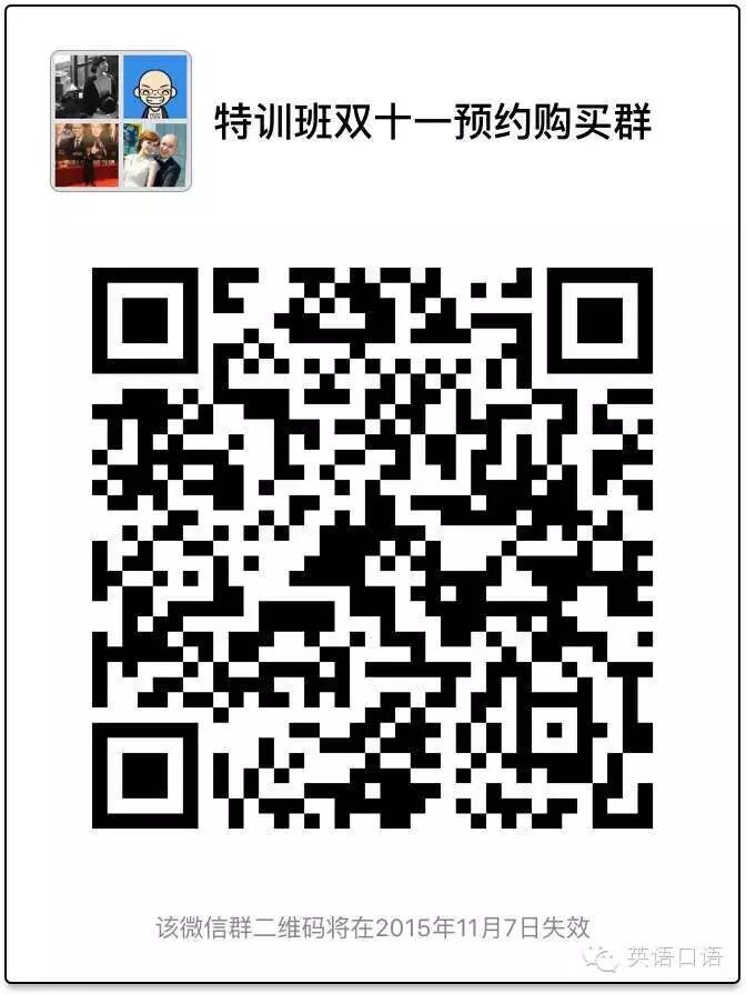 特训班减免500元学费以及1000元英语特训班大礼包只有在加了双十一特训班预约群,在双十一当天才可以开抢,名额有限,仅限100人,先抢到先得!