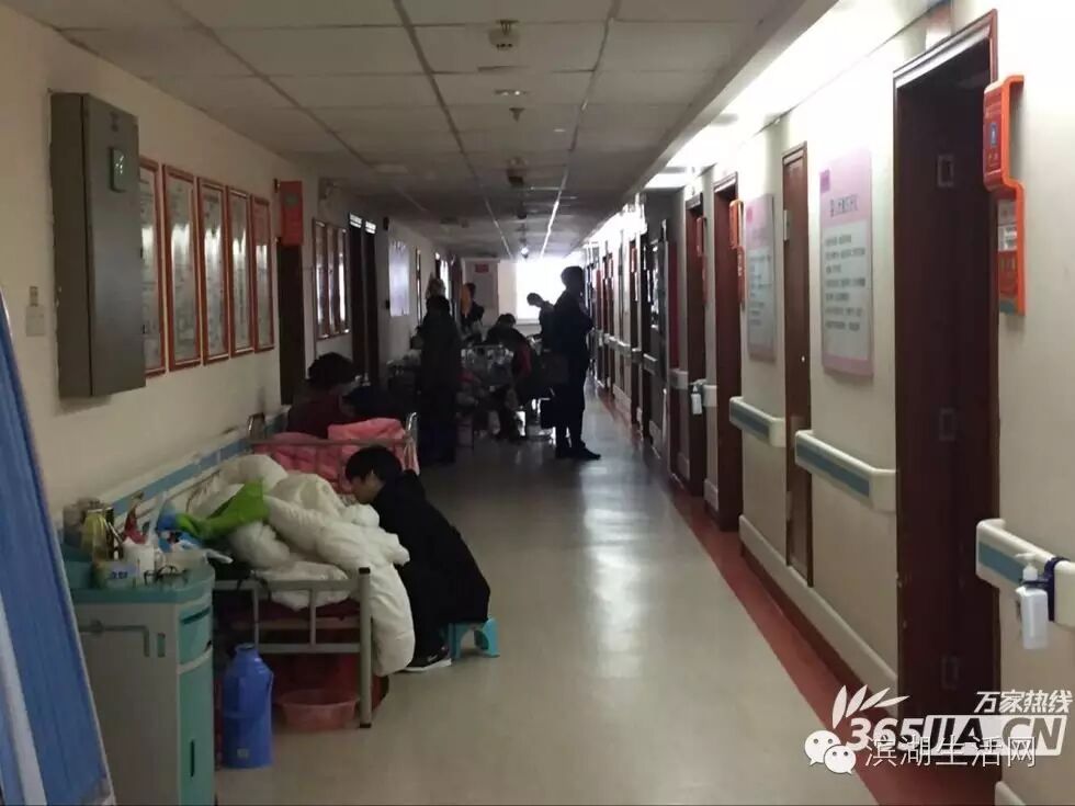 滨湖医院产科病房走廊内设满病床