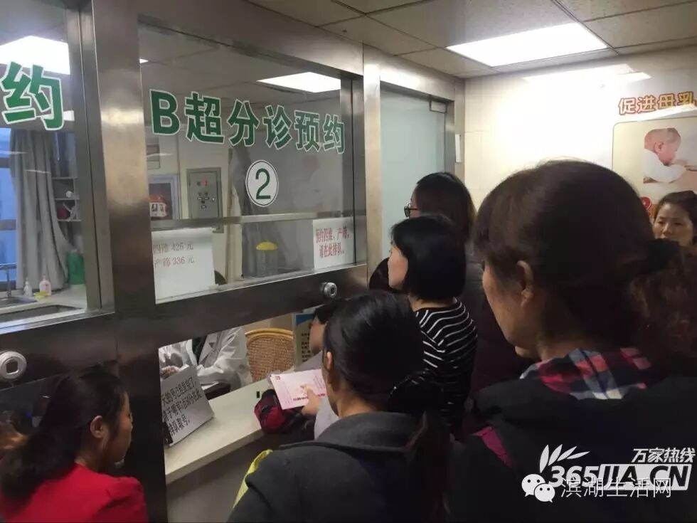 10月31日下午3点,安徽妇幼保健院500个B超检查号已挂完,孕产妇在分诊窗口前咨询预约事宜