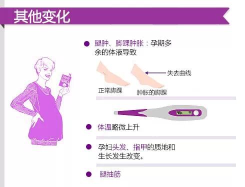 腿肿、脚踝肿胀:孕期多余的体液导致。