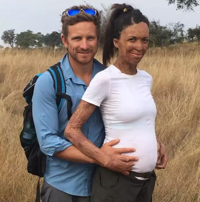 那么,问题来了?他们到底是何方人也?富二代?网红明星?都不是!来看看照片,对,没看错,这个容貌丑陋的女子就是视频中的孕妇,她叫Turia Pitt,而她旁边这个帅气的男子正是她的丈夫Michael。