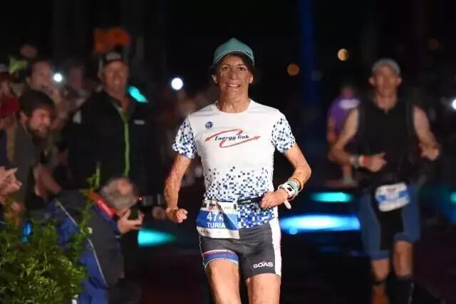 而且还参加了3.8公里游泳,180公里的骑行,再加上一个马拉松,总距离高达225.995公里的超长铁人三项的比赛。14个小时,这连普通人都未必会坚持完成的比赛,Turia凭借她顽强的毅力,坚持到了终点!