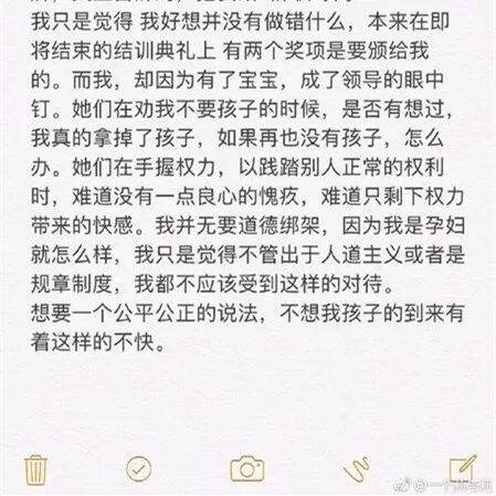 @象一阵风吹来20709:公司没错,你开公司就懂了,刚入职就怀孕,浪费一年时间。你自己心里要有点数,别人不是你爸妈,别人是要赚钱的,结婚生孩子对你来说是大事,对公司来说就是一个麻烦事。作为一个社会人,收起你的玻璃心,小孩出生后你觉得OK了再去上班了,还有别又怀二胎了,女性就业受歧视就是有你找你老公哭去吧。