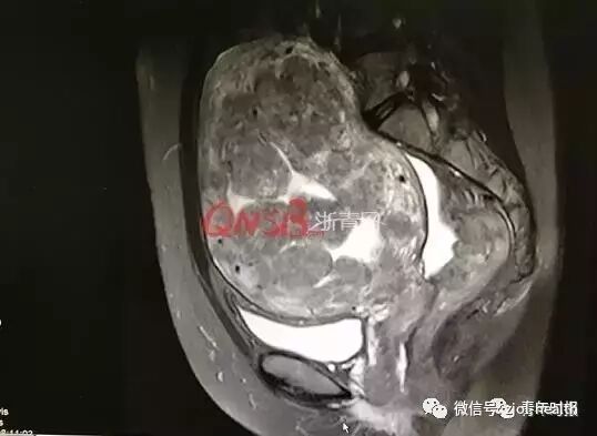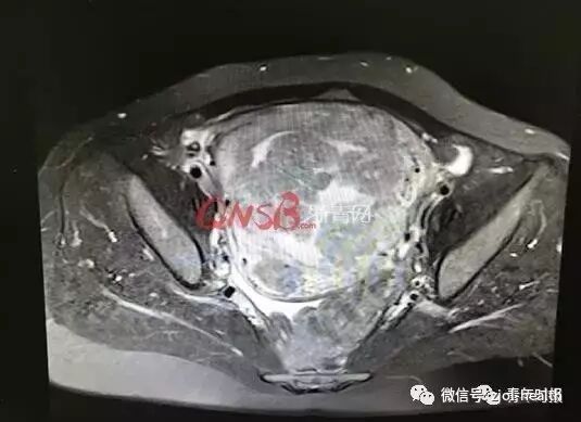B超检查等结果证实王女士患上子宫肌瘤,片子上可以清楚看到,她的肚子里满是密密麻麻的肌瘤。即使是肉眼看去,她的腹部明显突出,相当于怀孕六个月的子宫大小。