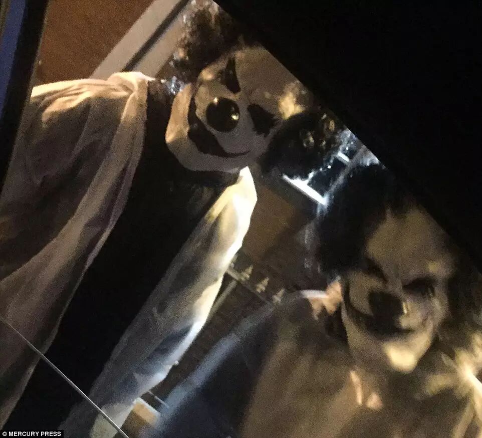 两名从树丛里走出来扮相小丑的人,企图引诱他走出房间,但幸运的是,他及时告知了妈妈Donna Arnold。