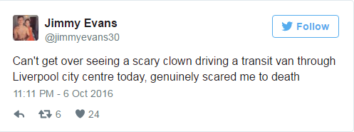 10月6日,有一扮相成小丑的司机,开着一辆 Ford 敞篷货车。在利物浦市中心招摇而过。