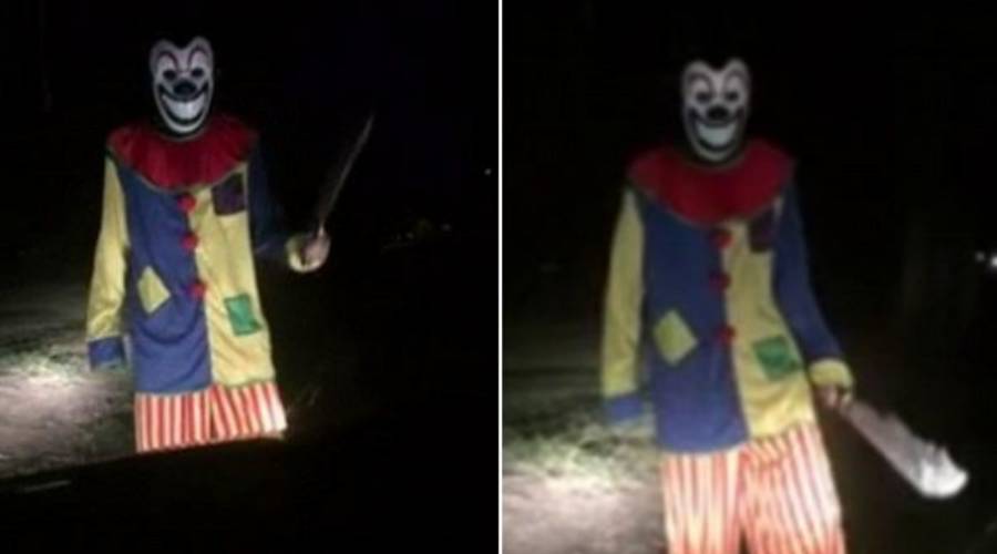 10月7日早上,一头顶彩色帽,身穿灰色运动裤,脚踩红鞋,戴小丑面具的男子,手持刀械,突然出现在一群十一、二岁的学生面前,并一路尾随他们到学校。