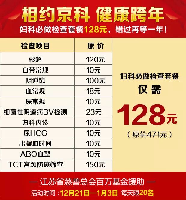 南京京科医院作为江苏省慈善总会百万爱心医疗基金援助定点机构,与江苏省慈善总会联合启动了100万公益基金人流专项援助,为您节省48%医疗费用,人流套餐最低仅需450元(原价880元)。这已经是医院综合考虑在保证安全与手术质量前提下能给的最大优惠。如果你还未确定自己是否怀孕,不妨来京科做个彩超检查。