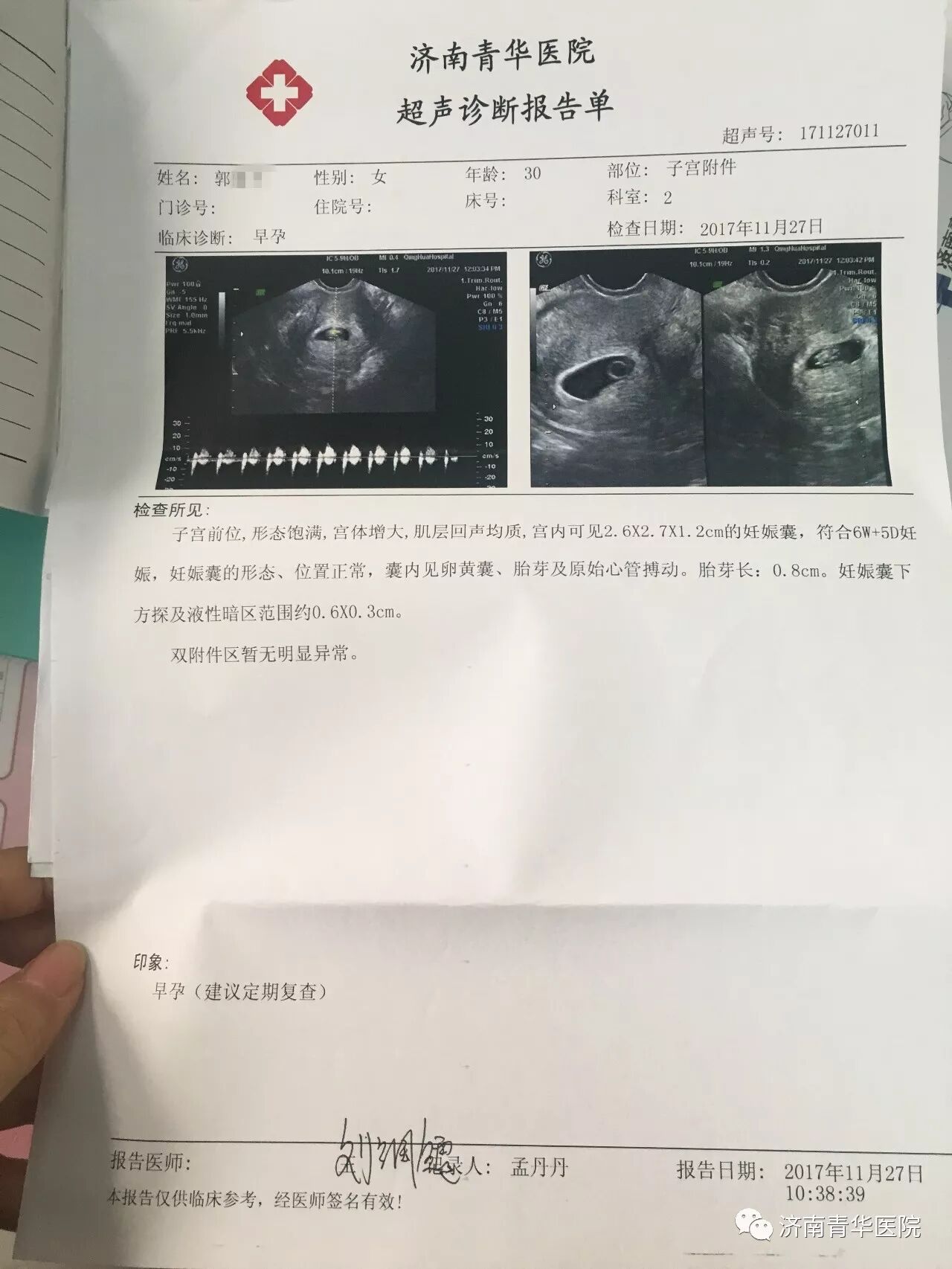 今儿个济南青华医院B超室又传来好消息!家住在济宁的郭女士在邓桂灵主任的治疗下,已经成功怀孕!