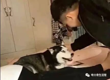 或许哈士奇心里也明白女主人肚子里是小宝宝,于是它更加关心女主起来,让女主人暖心又尴尬的事情是男主人来摸她肚子的时候,二哈一脸嫌弃,没摸两下,二哈就阻止了男主人的行为。