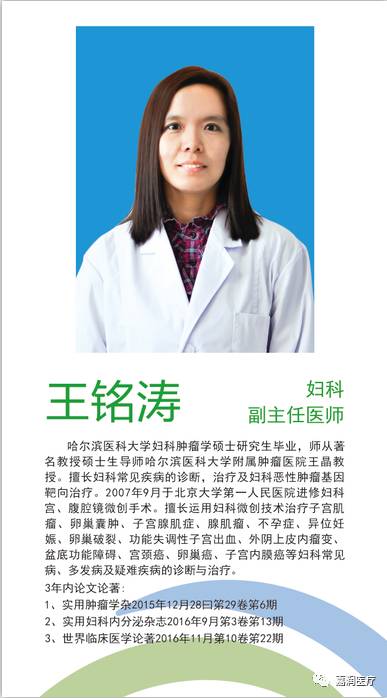 美国泽尔西西医疗集团哈尔滨嘉润医院妇科主任王铭涛温馨提醒您: