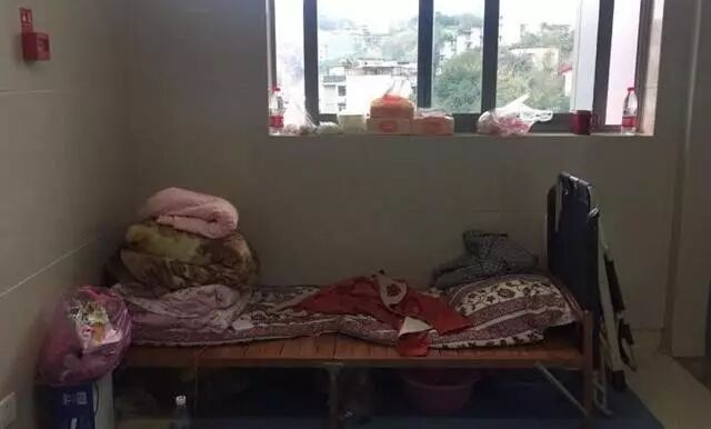 重症监护室外,坠楼妈妈亲人的临时床铺