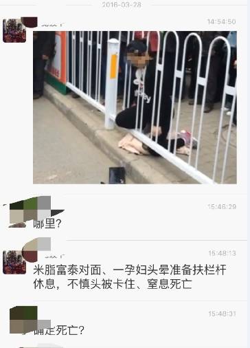 3月28日下午,陕西米脂街头,一孕妇疑因头晕,扶栏杆休息时不慎头被卡住,窒息死亡……