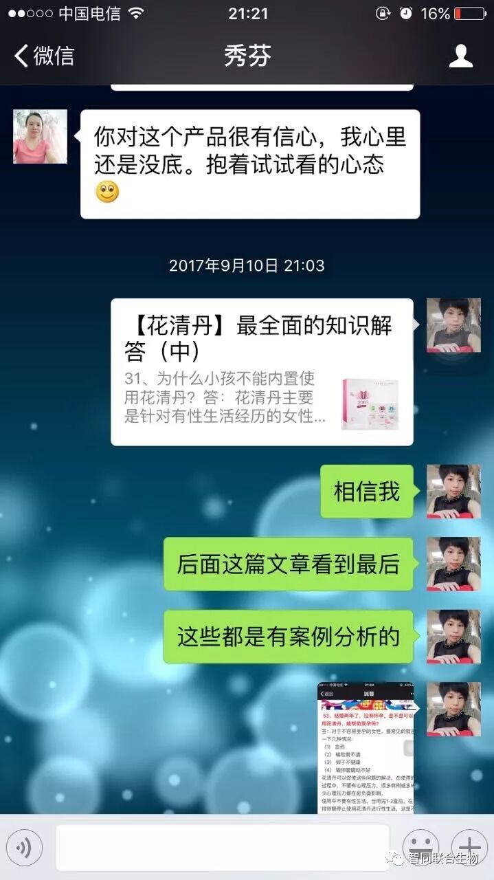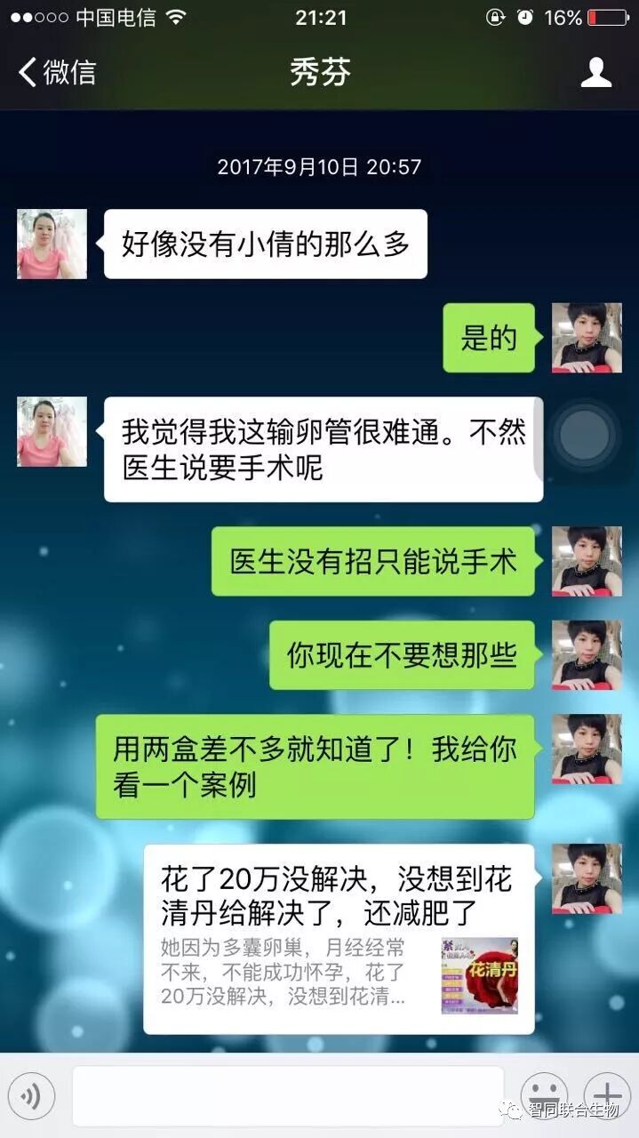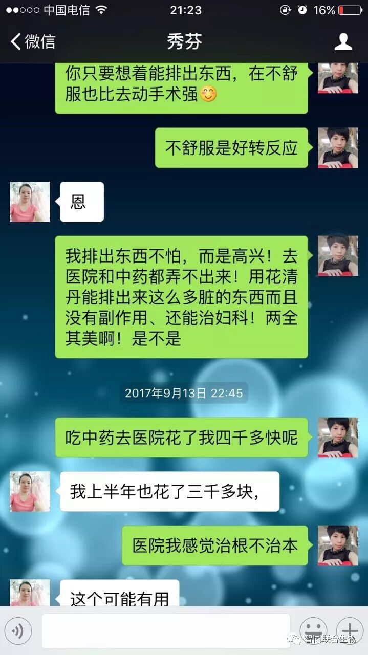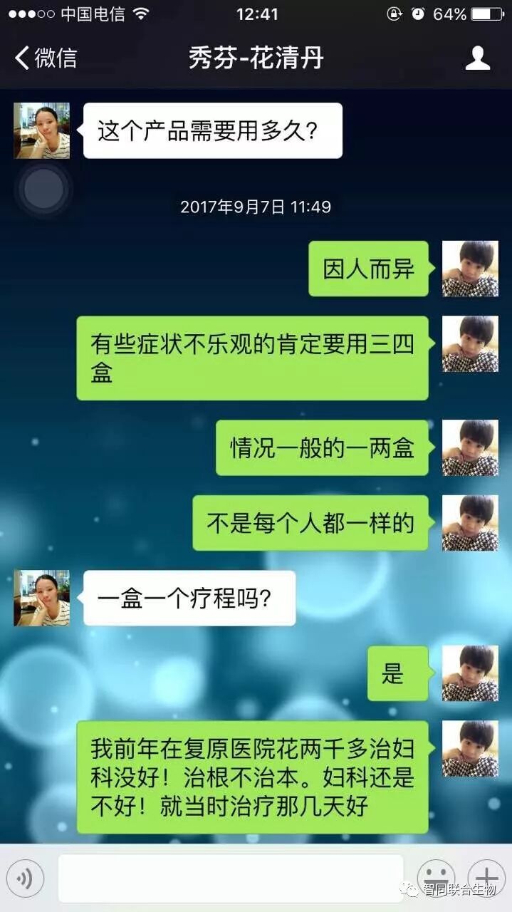 本案例来自无数案例中的一个,不做推广使用,只供借鉴。妇科病特别严重者请到医院,“花清丹”不是药物,只起保养和保健作用。