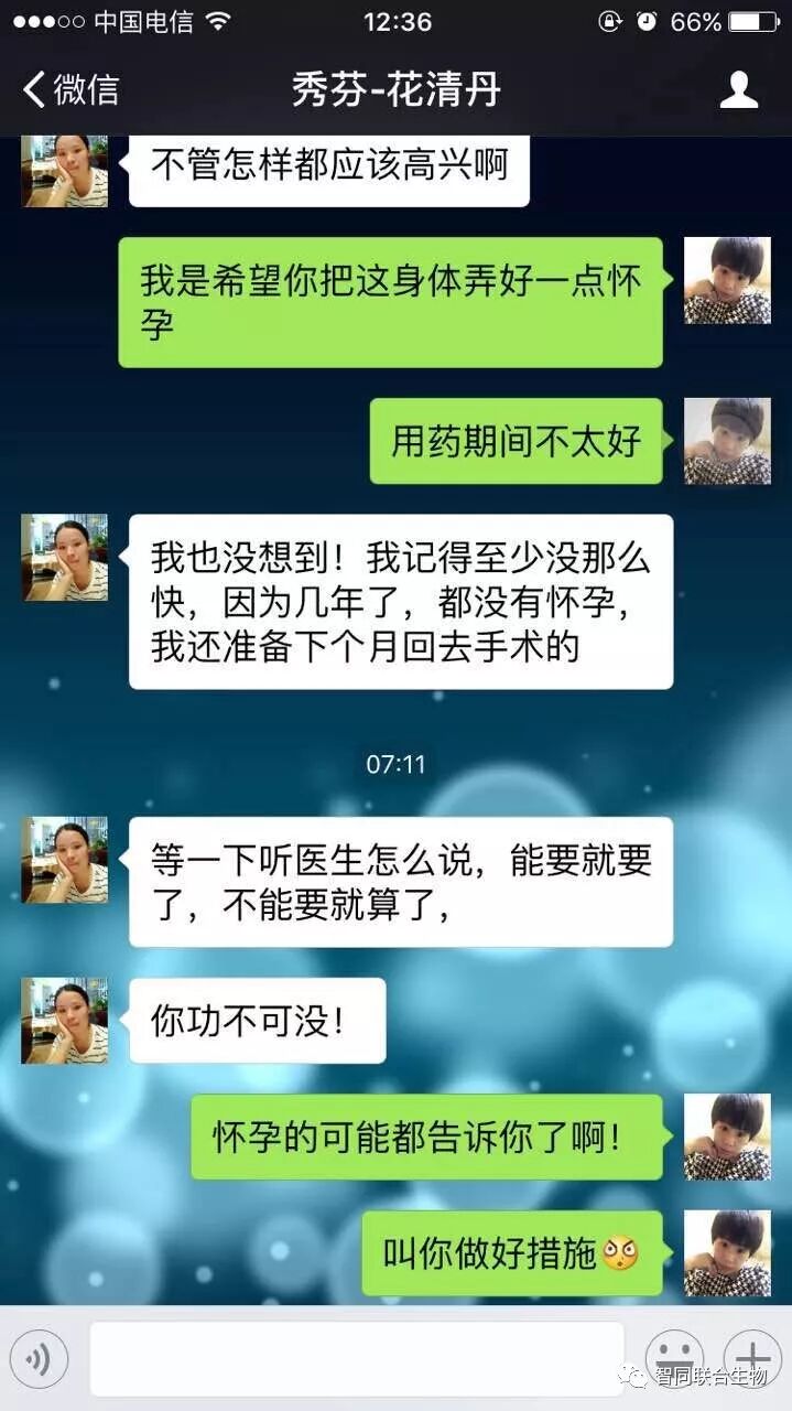 朋友这几年想怀孕都怀不上!去医院检查出来是输卵管堵塞!然后上半年通输卵管通了三千多,还是没有用!看到我用花清丹用的好!分享出来的文章也有说输卵管堵塞通了的案例,也抱着试试看的心态开始用起来!