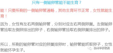 很多女性都因为宫外孕或是做试管切除了一侧输卵管,而且其中一部分人所剩的一侧输卵管也发生了病变,非常担心自己还能不能生育。