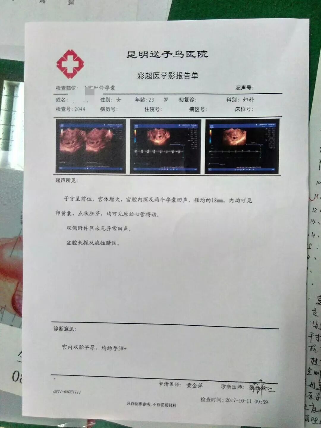 经过微创手术及术后复查两次促怀,小黄顺利怀孕。现宫内双胎5周啦!小黄一家别提多开心了。
